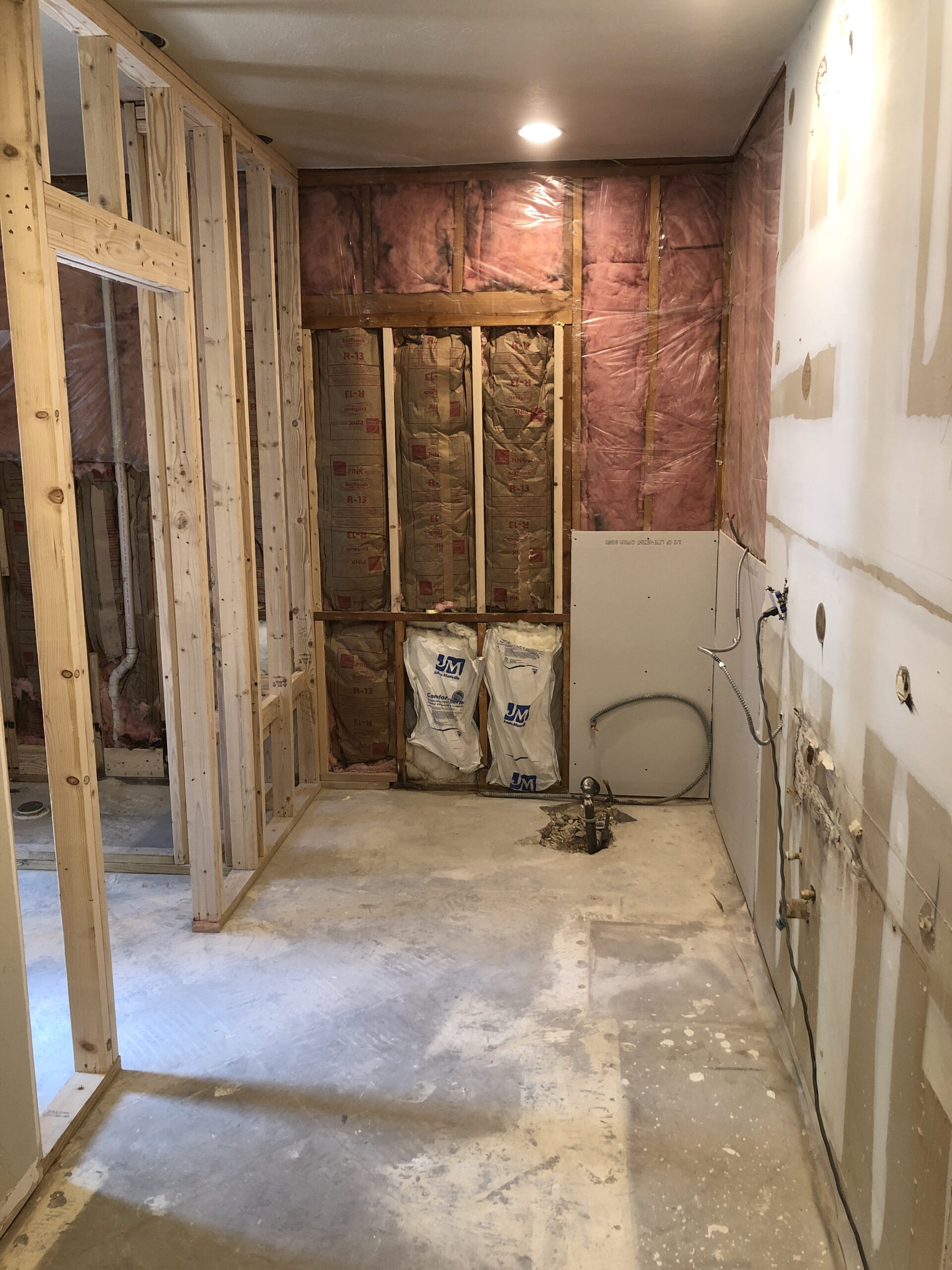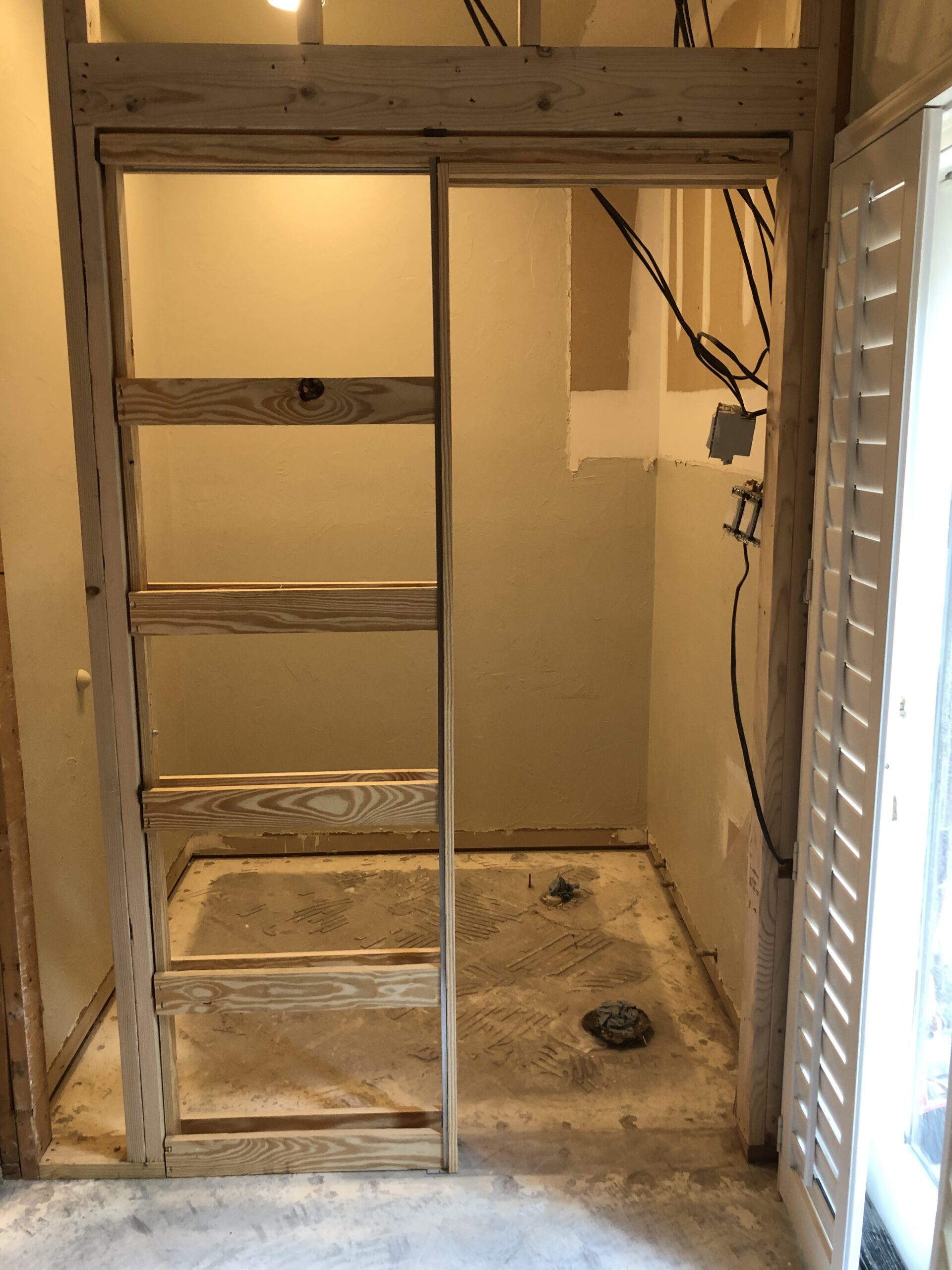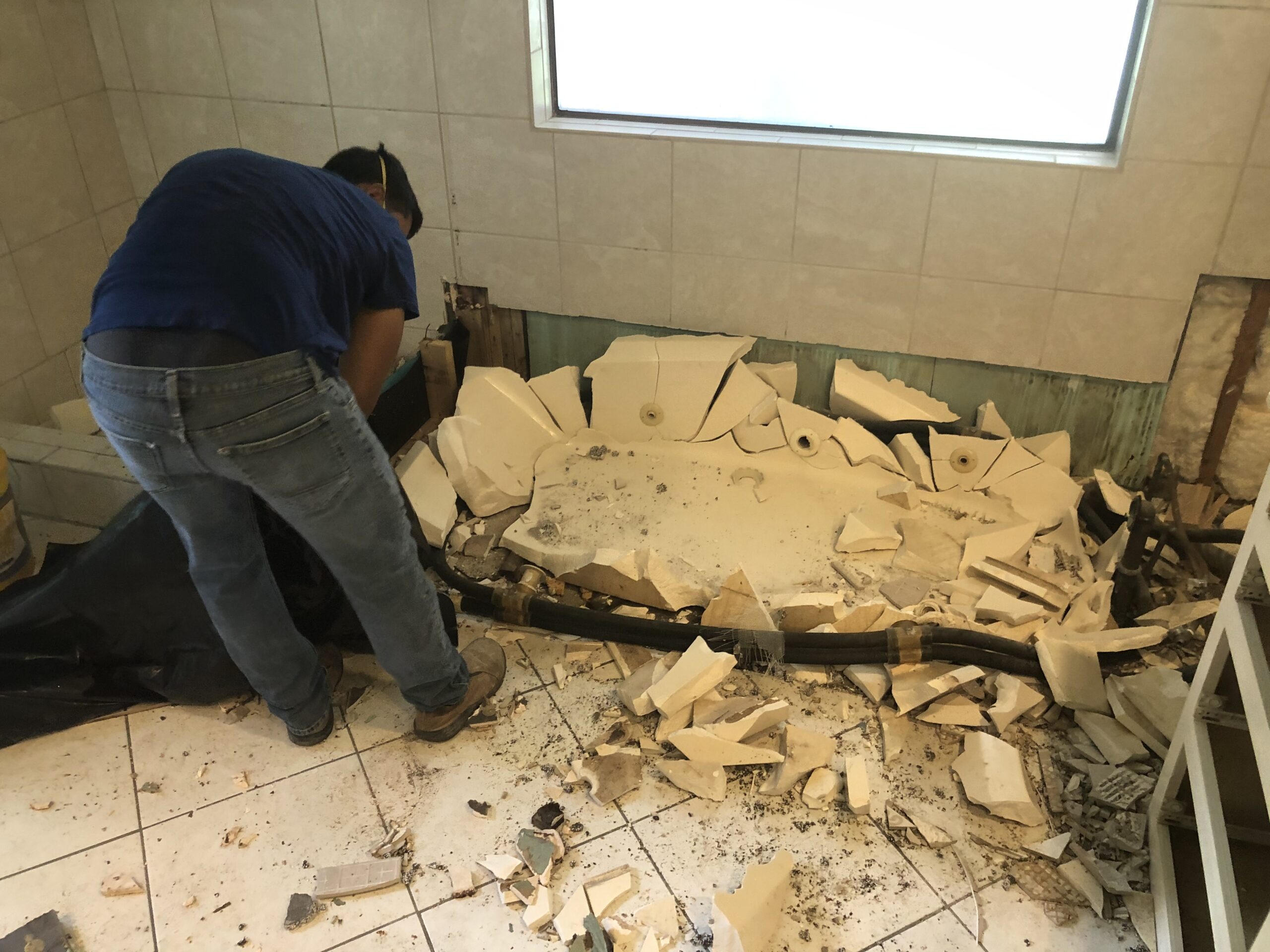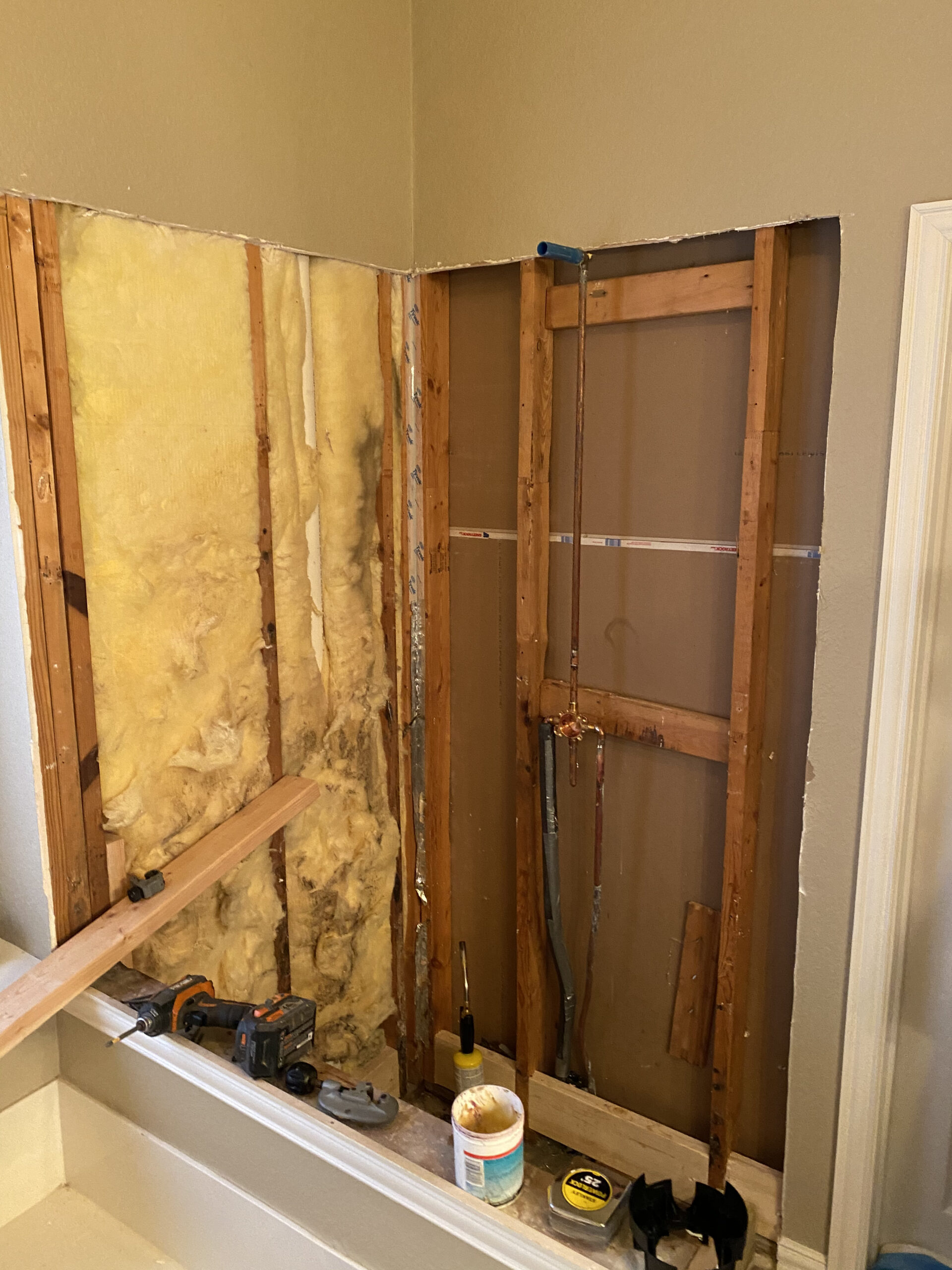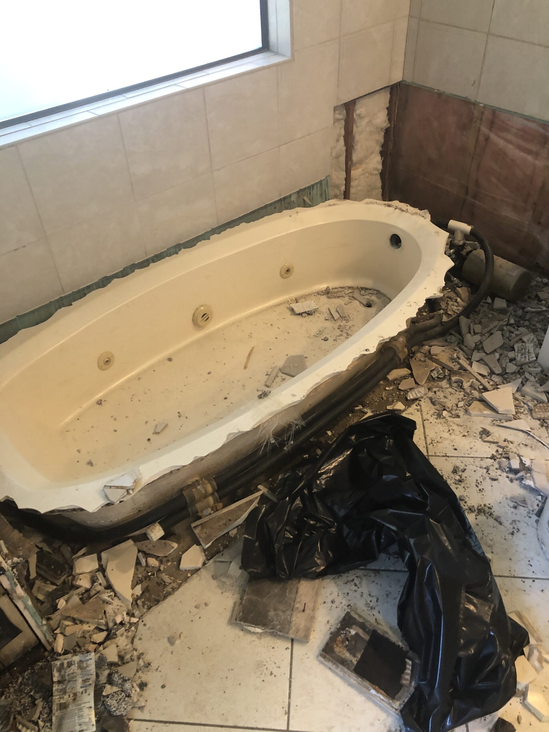 This Dallas remodel she shower and tub area was rotten and smelling like mold. The bathroom was gutted walls were moved and shower was framed in. If you like herring bone and busy this is your shower.